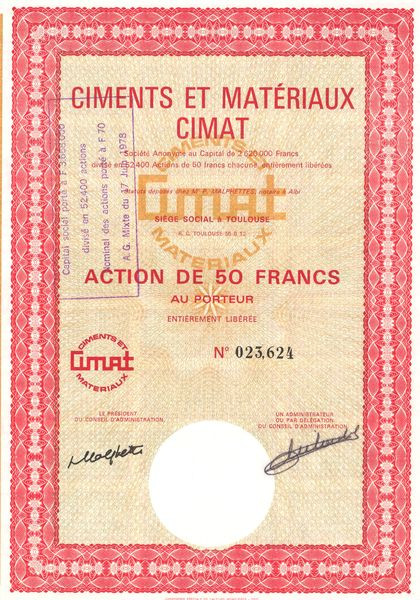 Ciments et Matériaux Cimat (Act 50 F)
