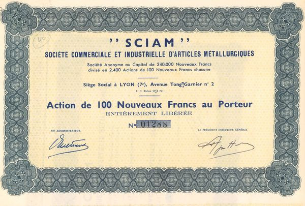 "SCIAM" Sté Commerciale et Industrielle d'Articles Métallurgiques (Act 100 NF)