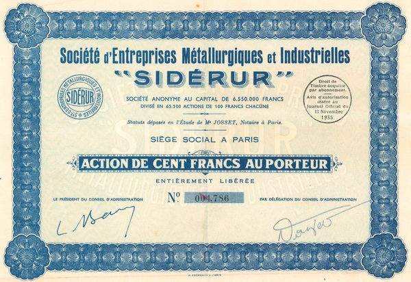 Sté d'Entreprises Métallurgiques et Industrielles "SIDERUR" (Act 100 F)