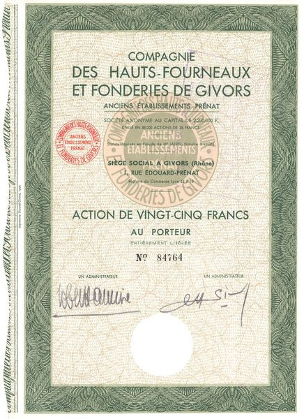 Cie des Hauts-Fourneaux et Fonderies de Givors - Anciens Ets Prénat (Act 25 F)