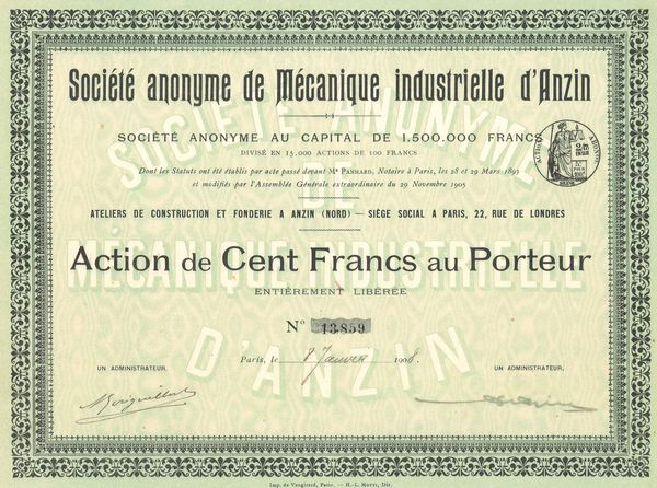 S.A. de Mécanique Industrielle d'Anzin (Act 100 F)
