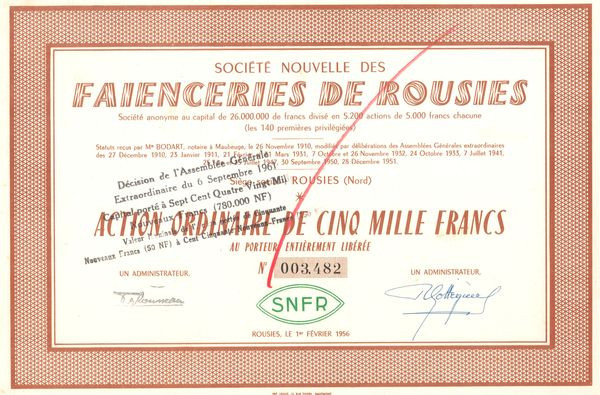 Sté Nouvelle des Faienceries de Rousies (Act O 5000 F)