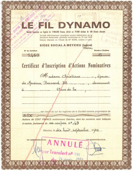 Le Fil Dynamo (Certif Inscrip Titre 06 Act Nomin)