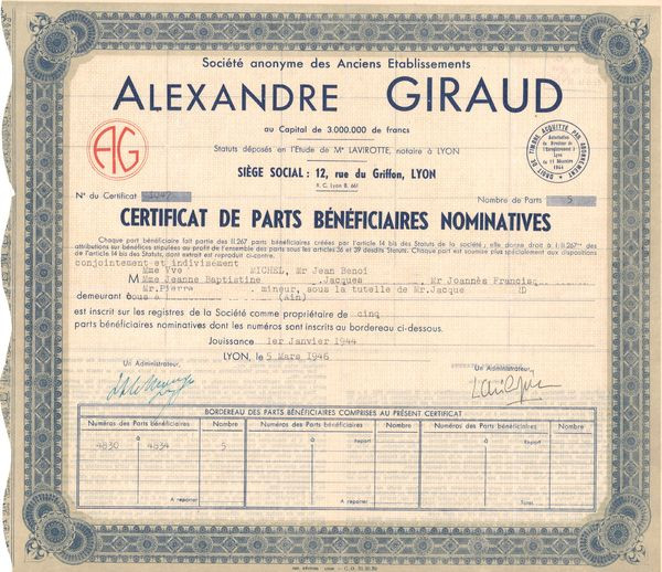 S.A. des Anciens Ets Alexandre Giraud (Certif PB Nomin)