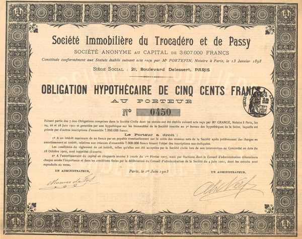 Sté Immobilière du Trocadéro et de Passy (Obl 500 F)