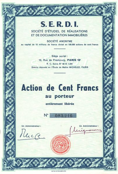 S.E.R.D.I. Sté d'Etudes. de Réalisations et de Documentation Immobilières (Act 100 F)