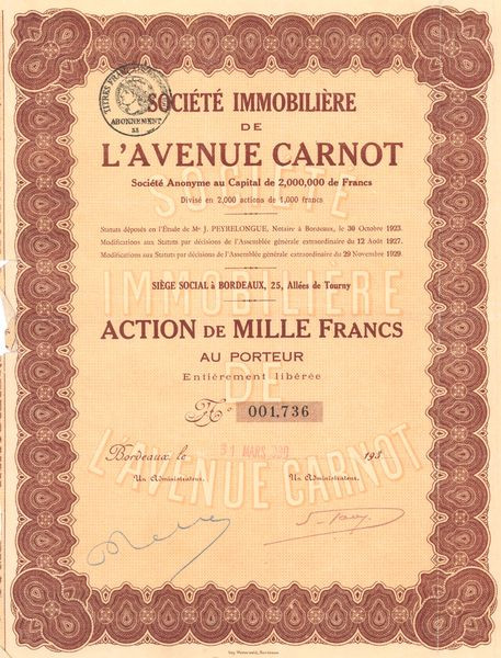 Sté Immobilière de l'Avenue Carnot (Act 1000 F)