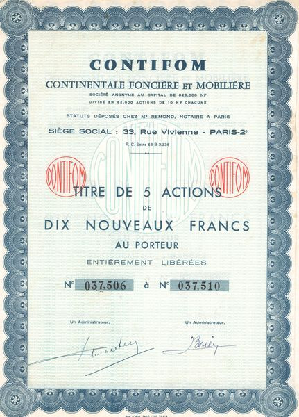 Contifom Continentale Foncière et Mobilière (Titre 05 Act 10 NF)