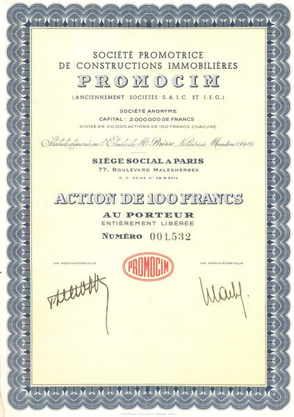 Sté Promotrice de Constructions Immobilières Promocim (Anciennement Sté S.A.I.C. et I.E.G.) - (Act 100 F)