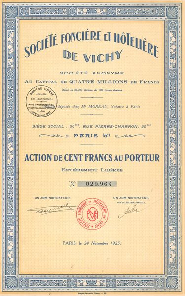 Sté Foncière et Hôtelière de Vichy (Act 100 F) (1925)