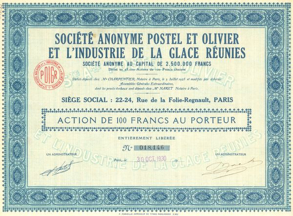S.A. Postel et Olivier et l'Industrie de la Glace Réunies (Act 100 F)
