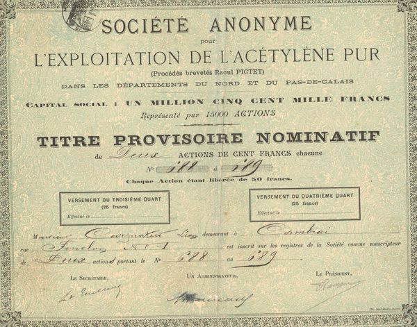 S.A pour l'Exploitation de l'Acétylène Pur (Procédés brevetés Raoul PICTET) (CN Act 100F)