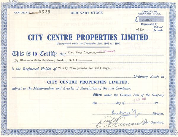 City Centre Properties Ltd (Titre 142 Act 5s Each)