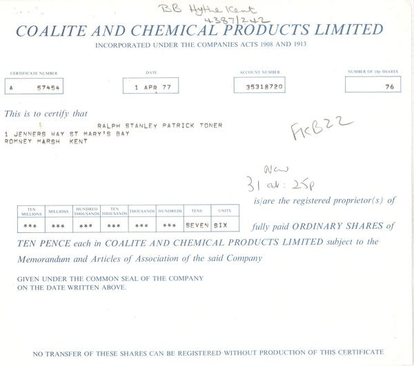 Coalite and Chemical Products Ltd (Titre 76 Act 0.10 £)