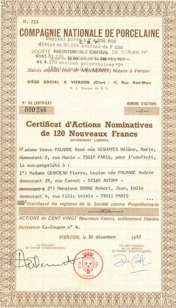 Cie Nationale de Porcelaine (CN Act 120NF)