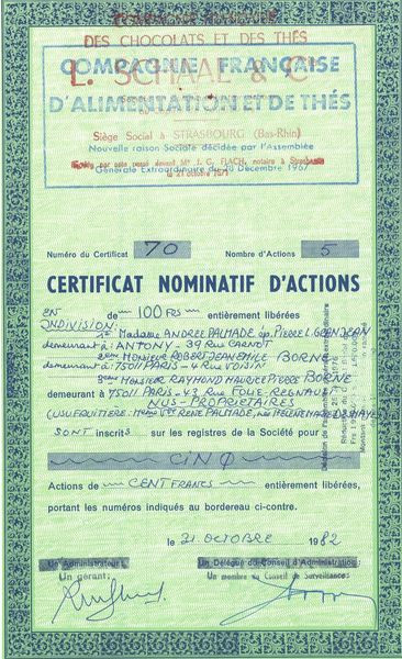 Cie Française des Chocolats et des Thés L. Schaal & Cie (CN Act 100 F)