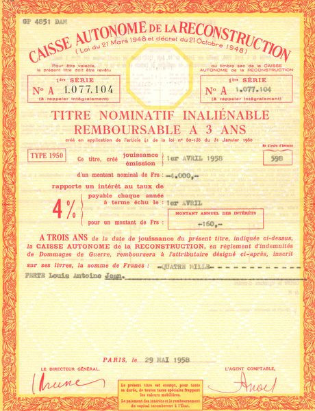 Caisse Autonome de la Reconstruction (Titre Nomin Remboursable 3 ans)