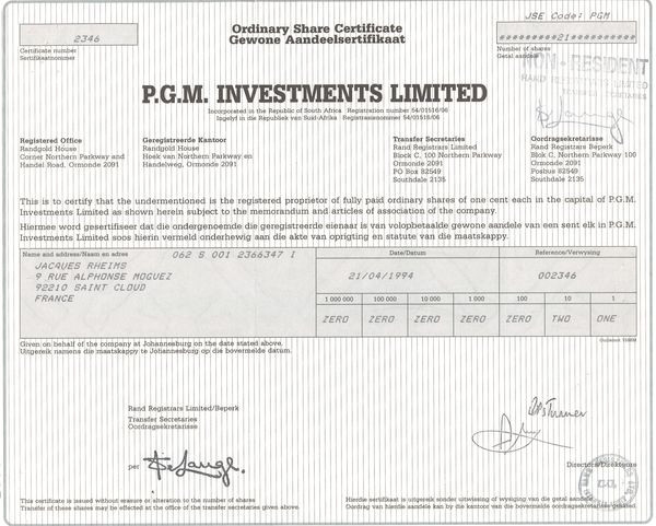 P.G.M. Investments Ltd (Certif Nomin)