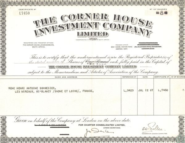 The Corner House Investment Cy Ltd (Certif Nomin)