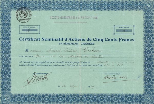 Sté d'Entreprises & de Participations (CN Act 500F)
