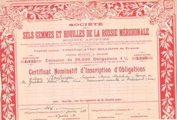Sté des Sels Gemmes et Houilles de la Russie Méridionale (CN Obl 4%)