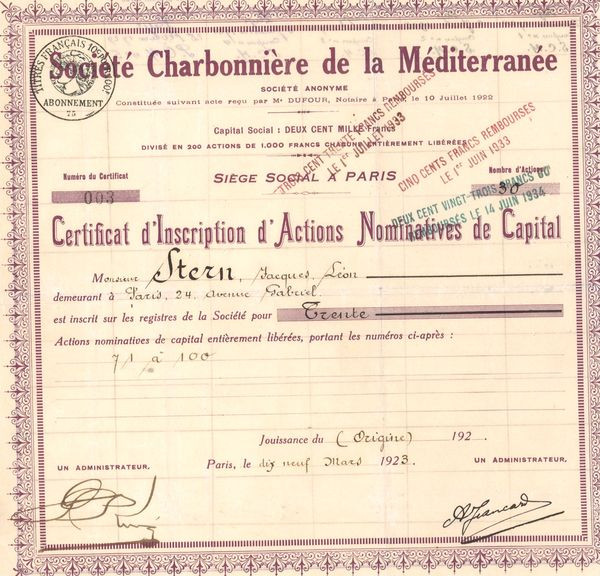 Sté Charbonnière de la Méditerrannée (CN Act 1000F)