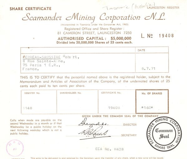 Scamander Mining Corporation N.L (CN Act 25c)
