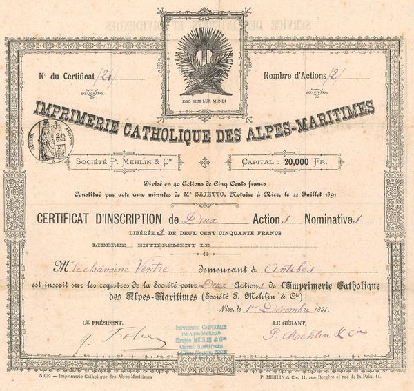 Imprimerie Catholique des Alpes Maritimes (Certif d'Inscription 02 Act 250 F)