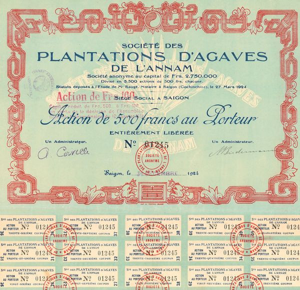 Sté des Plantations d'Agaves de l'Annam (Bleu)(Act 100 F)
