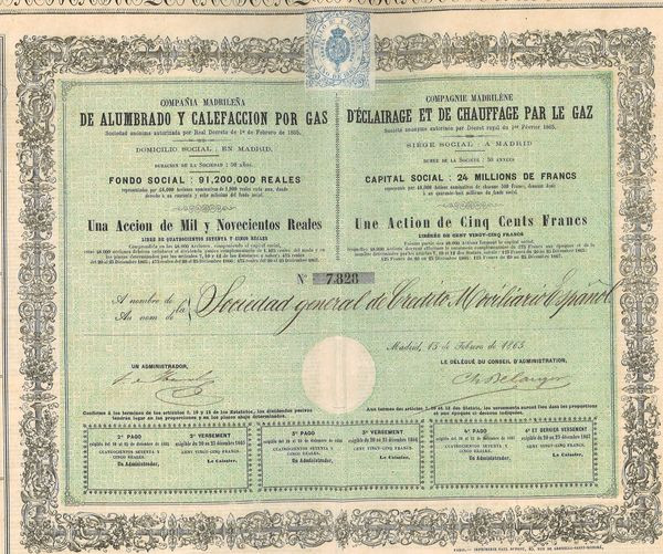Cie Madrilène d'Eclairage et de Chauffage par le Gaz (Act 500 F)