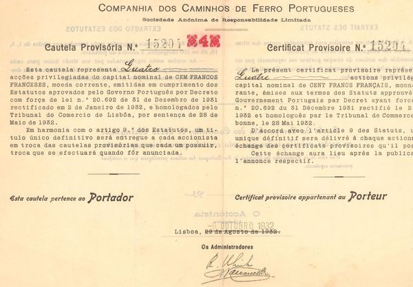 Companhia dos Camihos de Ferro Portugueses (Certif Provisoire)