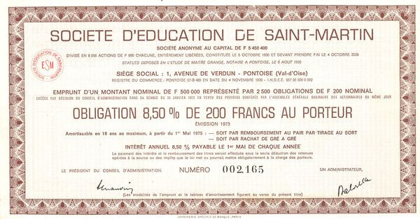Sté d'Education de Saint-Martin S.A. (Obl 8.50% 200 F)