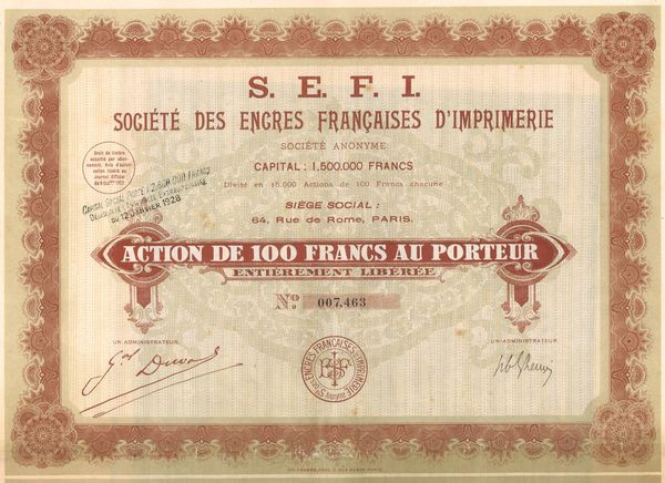 S.E.F.I. Sté des Encres Françaises d'Imprimerie (Act 100 F)