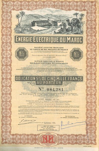 Energie Electrique du Maroc 5% 1935 - (Obl 5% 5000 F)