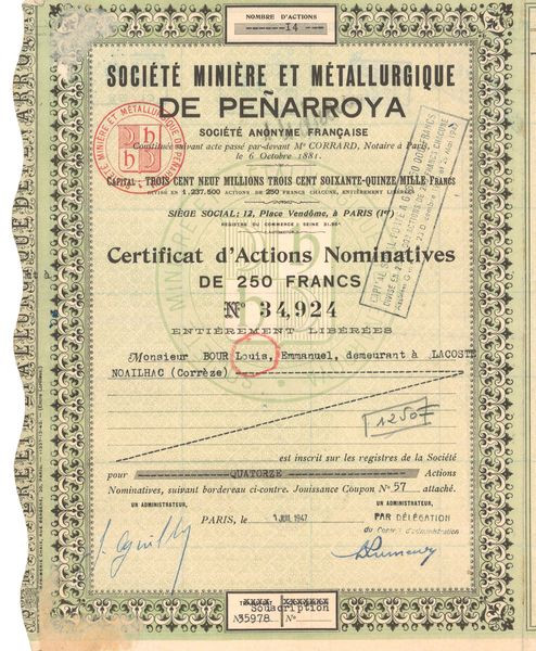 Sté Minière et Métallurgique de Penarroya (Act 250 F)