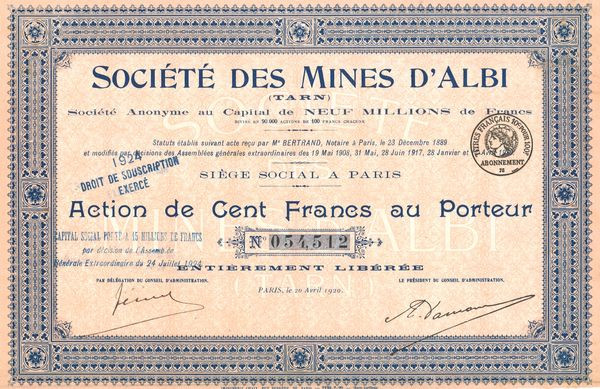 Sté des Mines d'Albi (Act 100 F)