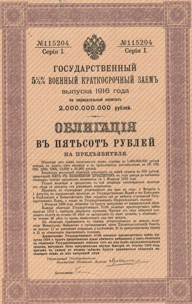 Emprunt Militaire 5 1/2 % 1916 - Série 1 (Rose)(Act 500 Rbl)