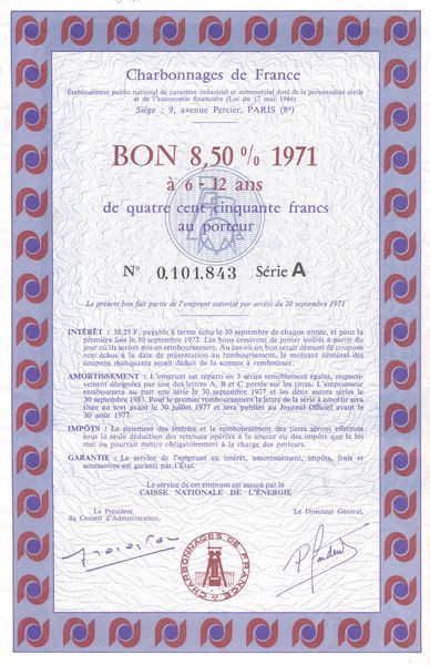 Charbonnages de France - Serie A (Bon 8.50% 1971 450 F)