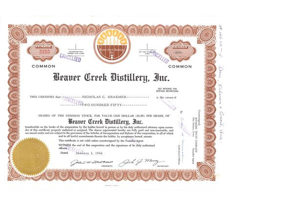 Beaver Creek Distillery Inc (Titre 50 Act)