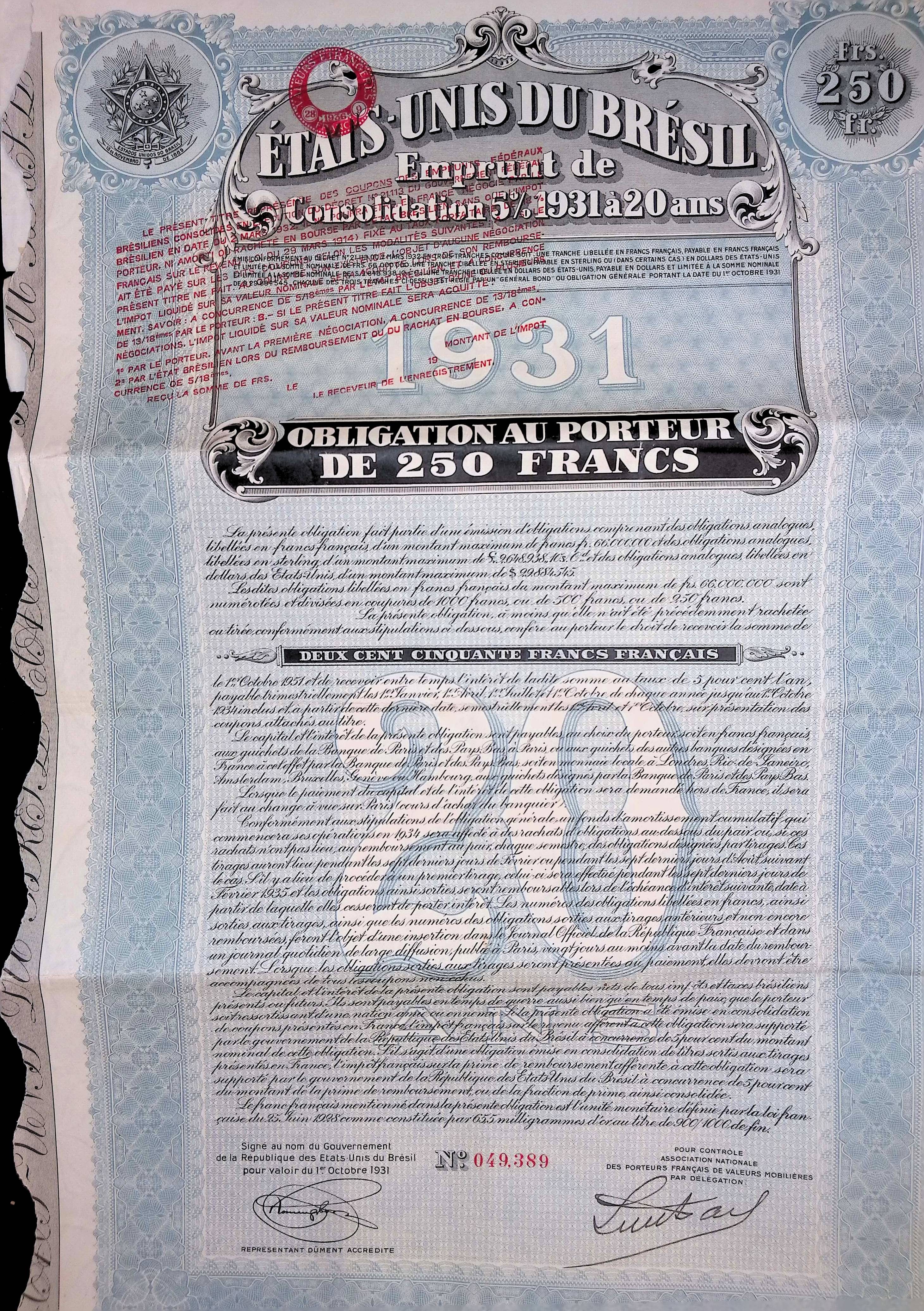 Etats-Unis du Brésil - Emprunt de Consolidation 5 % 1931 à 20 ans (Obl 500 F)