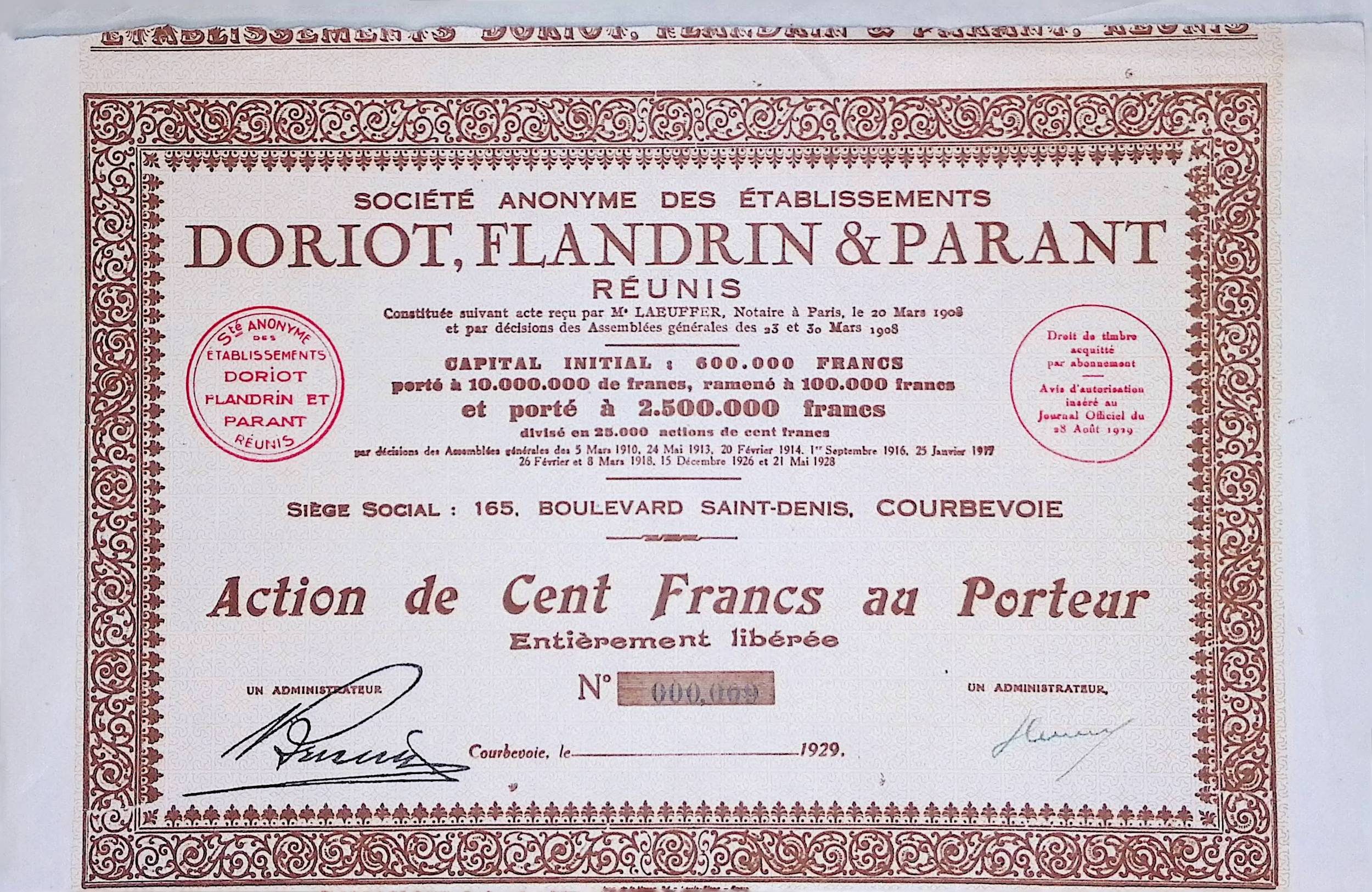 S.A des Ets Doriot, Flandrin & Parant Réunis