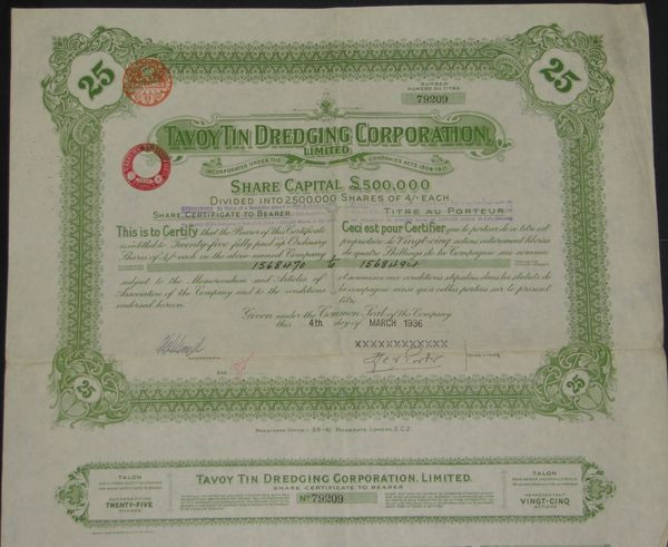 Tavoy Tin Dredging Corporation Ltd (25 Ac)
