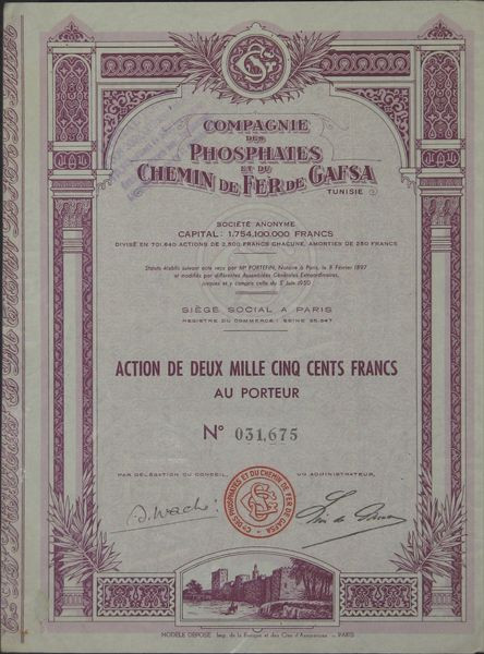 Cie des Phosphates et du Chemin de Fer de Gafsa (2500 F)