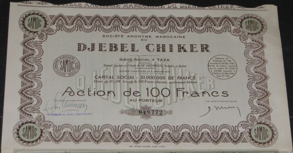 S.A. Marocaine du Djebel Chiker (tirage 210 000)