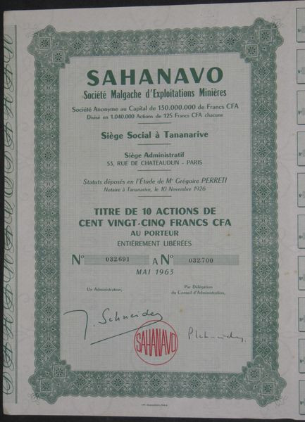 Sahanavo Sté Malgache d'Exploitations Minières (10 Ac)