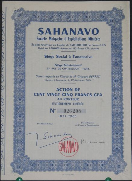 Sahanavo Sté Malgache d'Exploitations Minières (1 Ac)