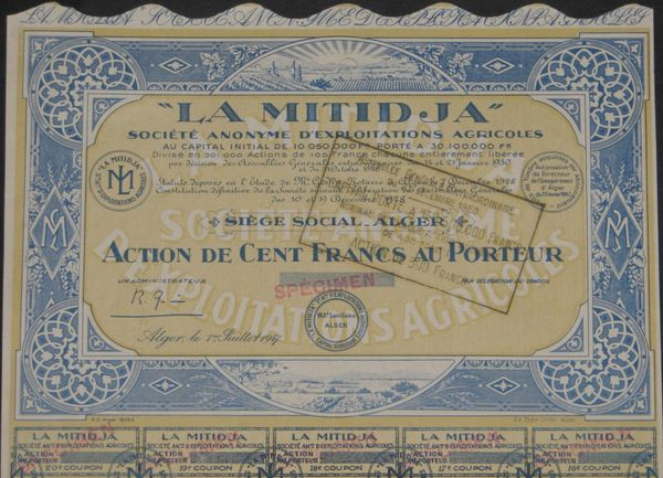 "La Mitidja" S.A. d'Exploitations Agricoles (specimen)