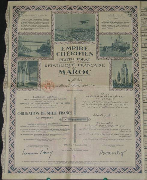 Empire Chérifien Protectorat de la République Française au Maroc - Emprunt garanti 4 %