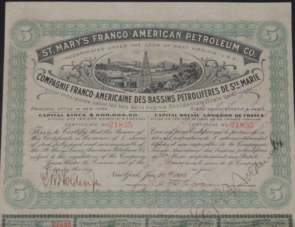 Cie Franco-Américaine des Bassins Pétrolifères de Ste-Marie (5 Ac)