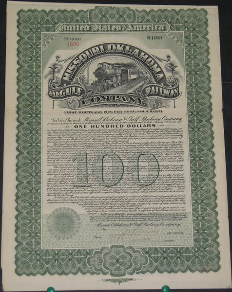 Missouri Oklahoma & Gulf Railroad Cy (Gold bond)